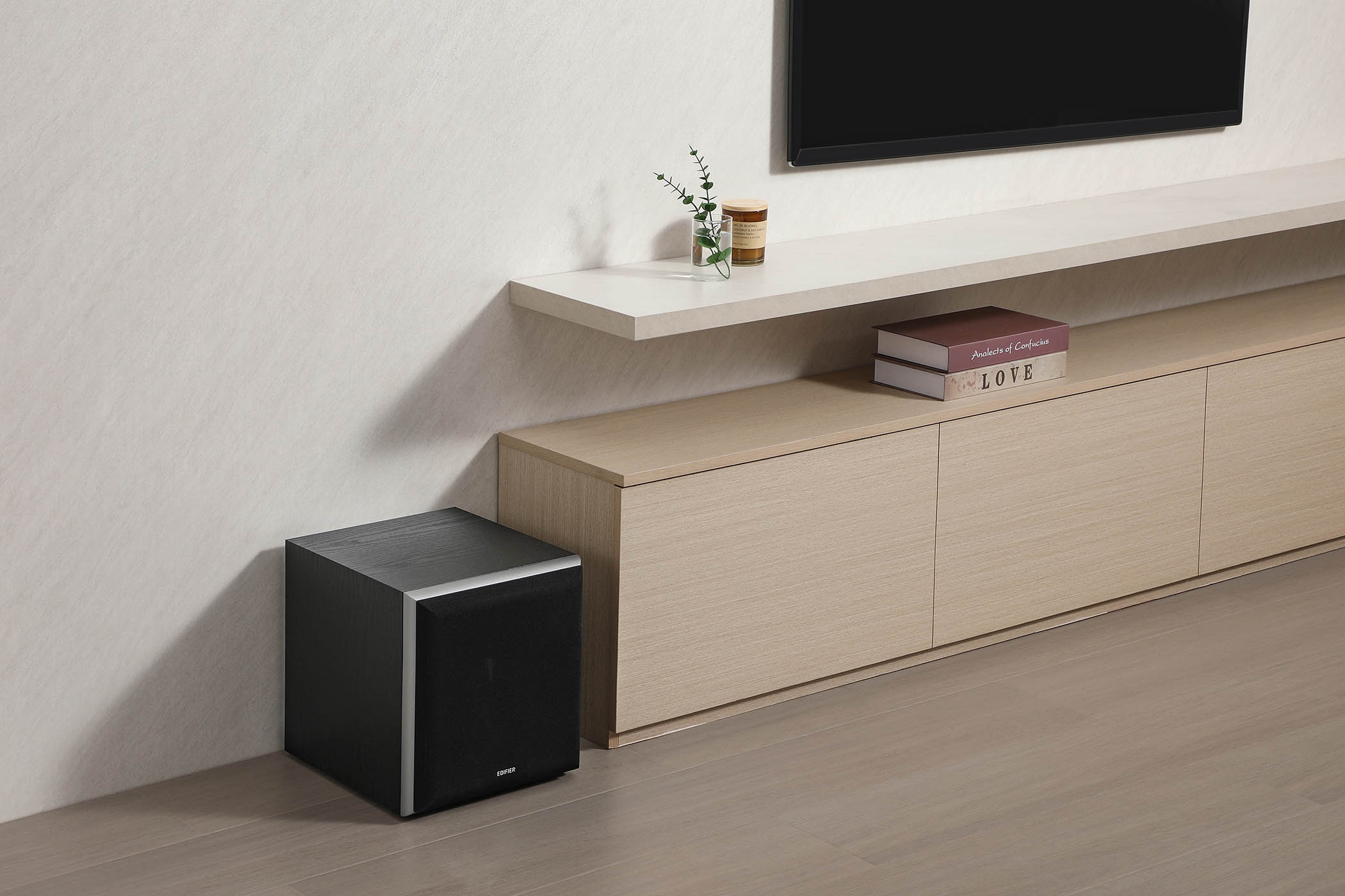 Featuring an 8-inch long-throw woofer, this subwoofer reproduces low frequencies down to 38Hz. Powered by a high-efficiency switching power supply and Texas Instruments closed-loop class-D amplifier, it delivers 70W RMS output.